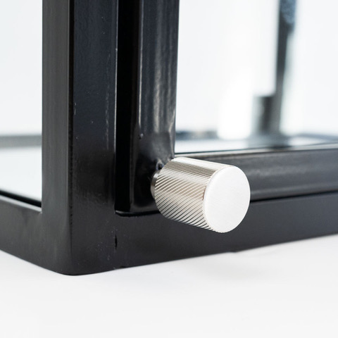 Frame & Hinge cabinets exhibit thin, refined lines while offering a robust feel that will pair seamlessly with any style kitchen. Cabinet doors are inset within a one-piece, welded steel cabinet box and hung with sturdy lift off bullet hinges. We are proud to offer Plank Hardware knob pulls, in swirled brass, swirled stainless or knurled black, affixed by a standard M4 weld screw, allowing for endless customization.